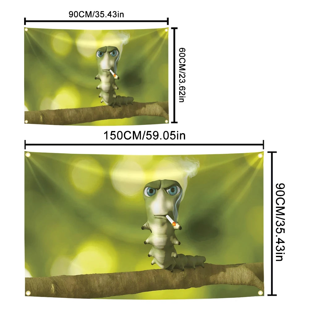 Add some personality to your space with this eye-catching flag featuring a grumpy cartoon caterpillar chilling on a branch. The bold colors and playful design make it perfect for bedrooms, gaming setups, dorm rooms, or anywhere that needs a little humor. Lightweight, durable, and easy to hang — it’s a simple way to make your wall stand out.
